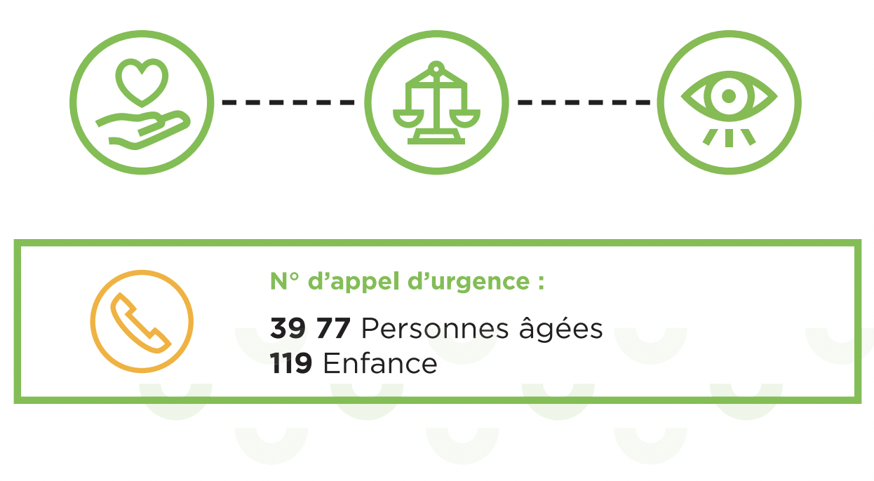 Plus d'informations sur le site du gouvernement : https://www.pour-les-personnes-agees.gouv.fr/preserver-son-autonomie-s-informer-et-anticiper/perte-d-autonomie-evaluation-et-droits/que-faire-en-cas-de-maltraitance